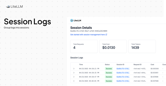 To group multiple requests into a single session, pass the same litellm_session_id in the metadata for each request. Here's how to do it: